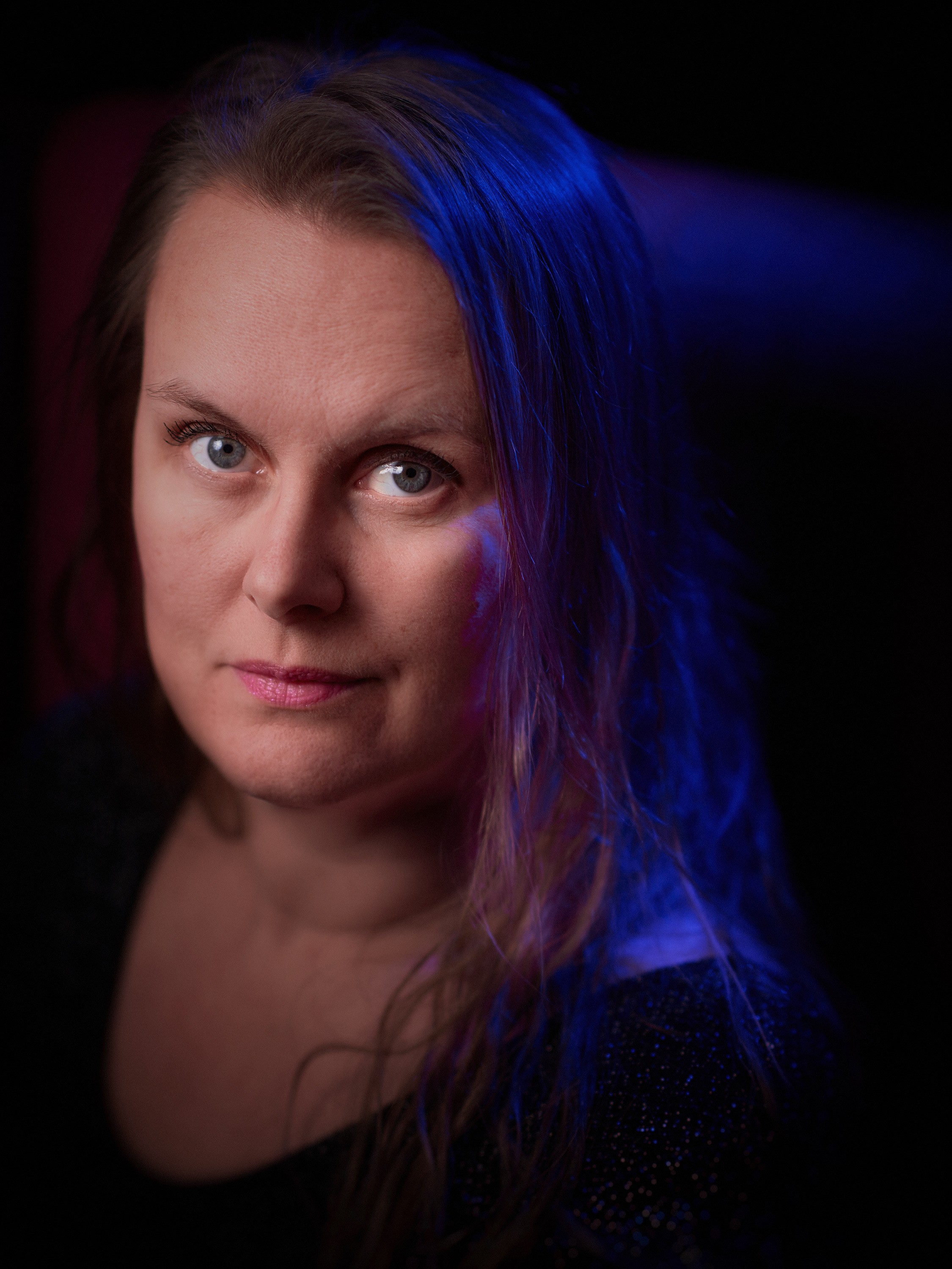 Spontant porträtt av Monique 1 december 2018. Bilden togs mellan två reguljära fotograferingar medan blixtar och ljusformare flyttades om.