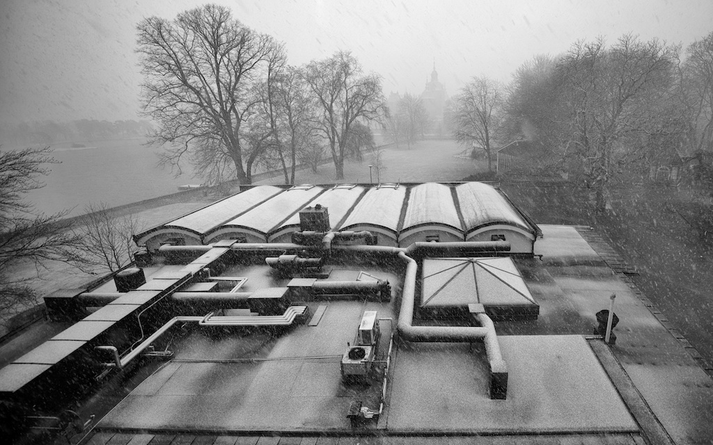 🇸🇪 I ett tidigare inlägg – Grimskär del 1 – skrev jag om Grimskär och dess betydelse för Sveriges försvar under tiden från 1600-talet och framåt och att jag brukar passera Grimskär under den dagliga hundpromenaden. Igår var snöfallet kraftigt och Grimskär knappt synligt. Objektivet har ingen vignettering vid bländare f/4.5, så jag antar att de mörka hörnen beror på ett optiskt fenomen orsakat av det täta snöfallet. Antagligen ett haloliknande fenomen.